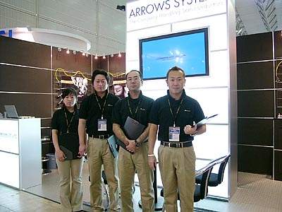 出展担当平野,朝岗,近藤,金 (从右到左的顺序)
